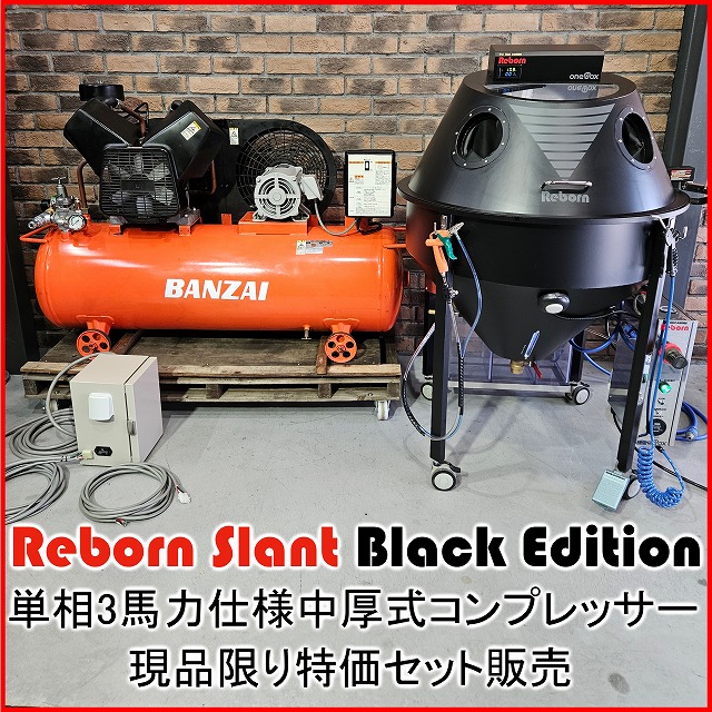 - 【特価情報】Reborn Black Edition と単相200Vで利用できるように改造した中圧式3馬力コンプレッサーの1セット限りの特価販売ページを公開致しました。