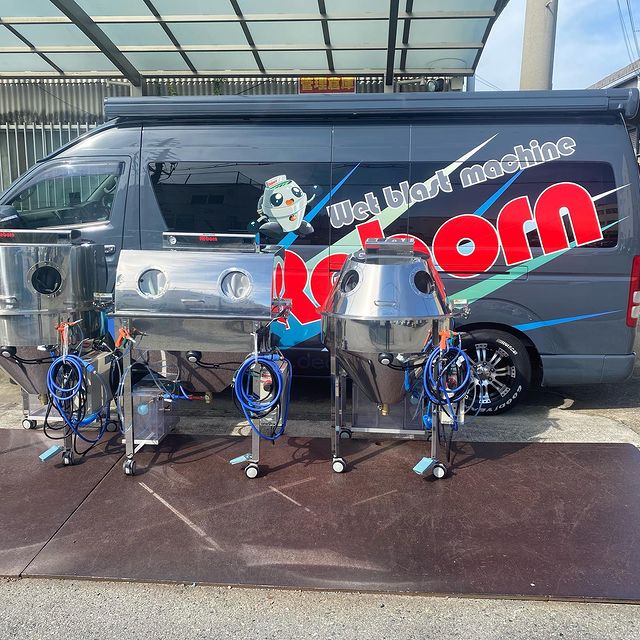 神奈川県横浜市のM氏ガレージに当時オリジナルウェットブラストマシンRebornスラントタイプを納品