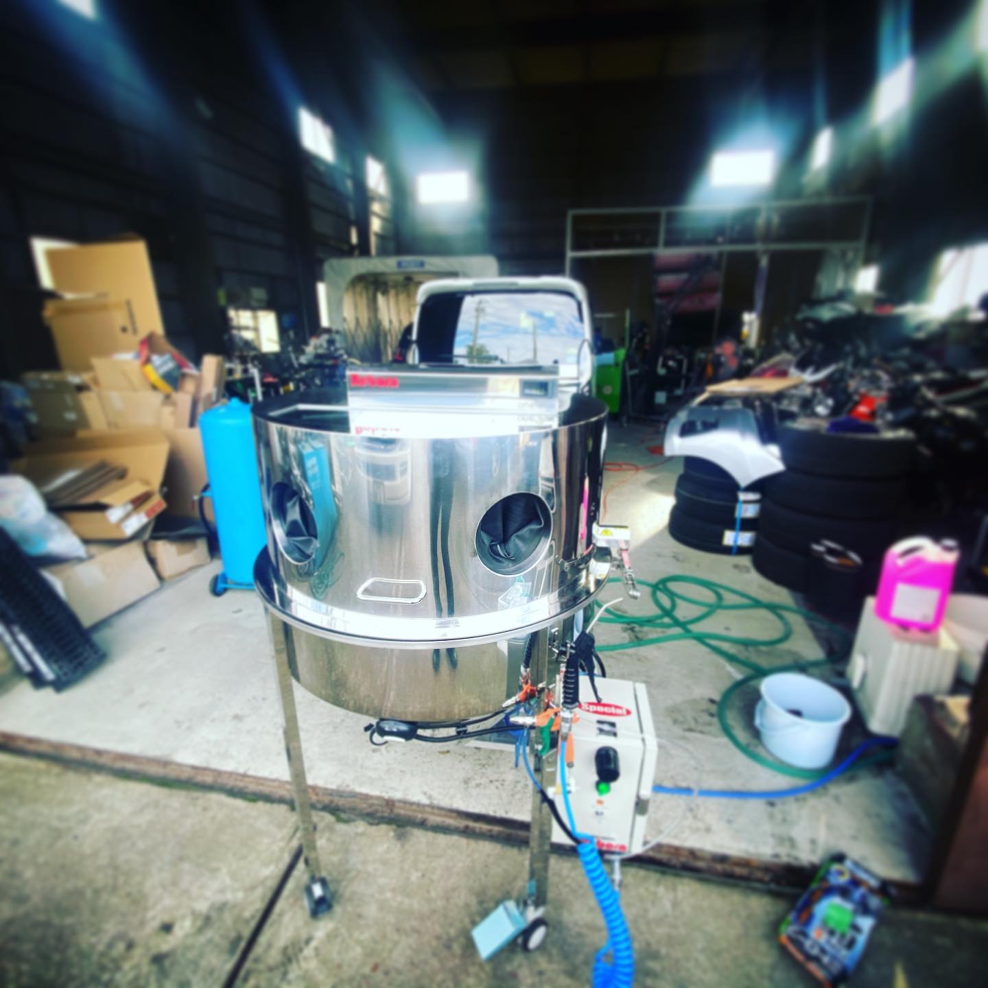 こちらは、まだ動力(三相200V)が入ってないので当社オリジナルのインバータ改単相200V仕様の3馬力コンプレッサーも一緒にお買い上げ頂きました。