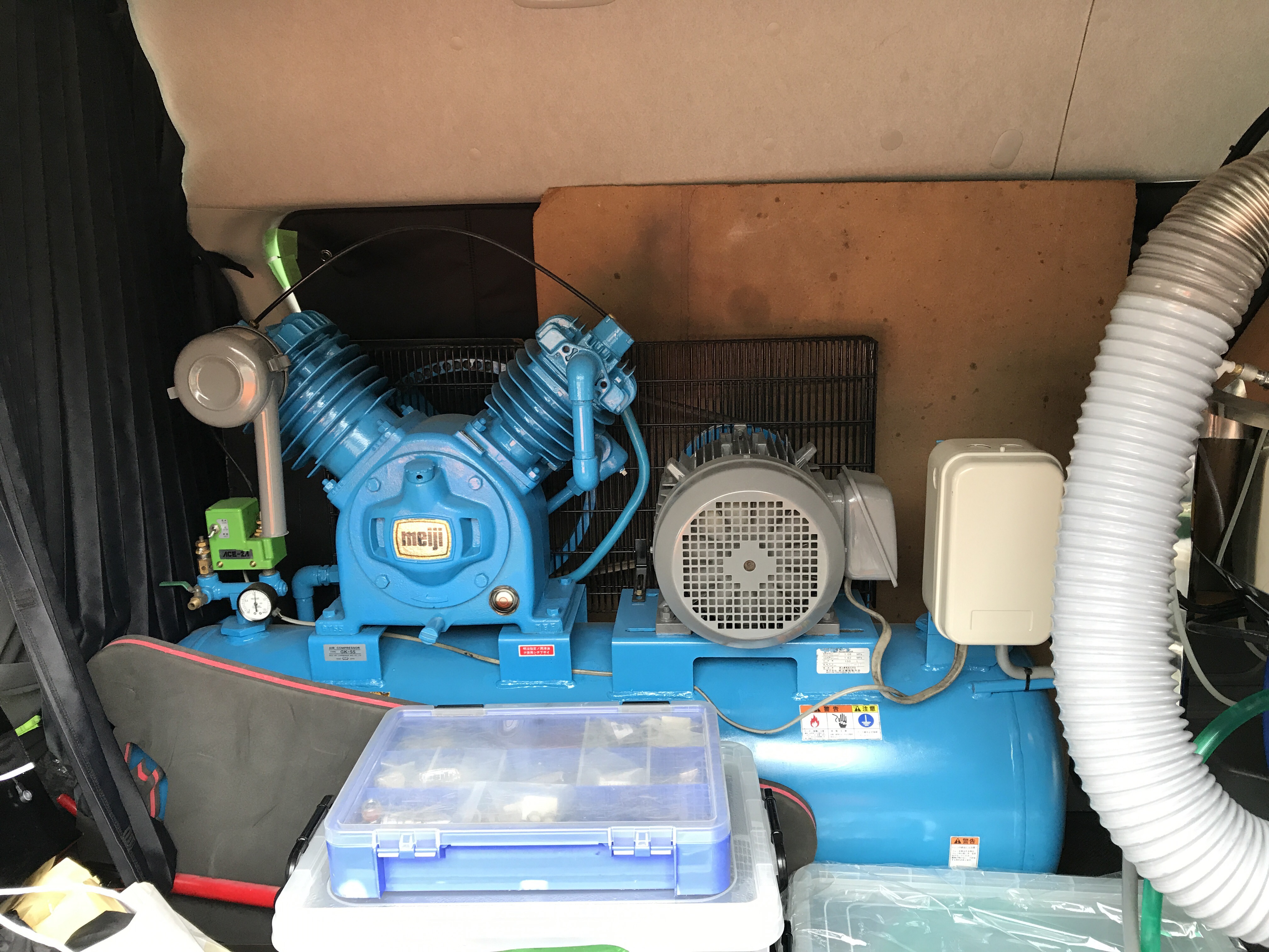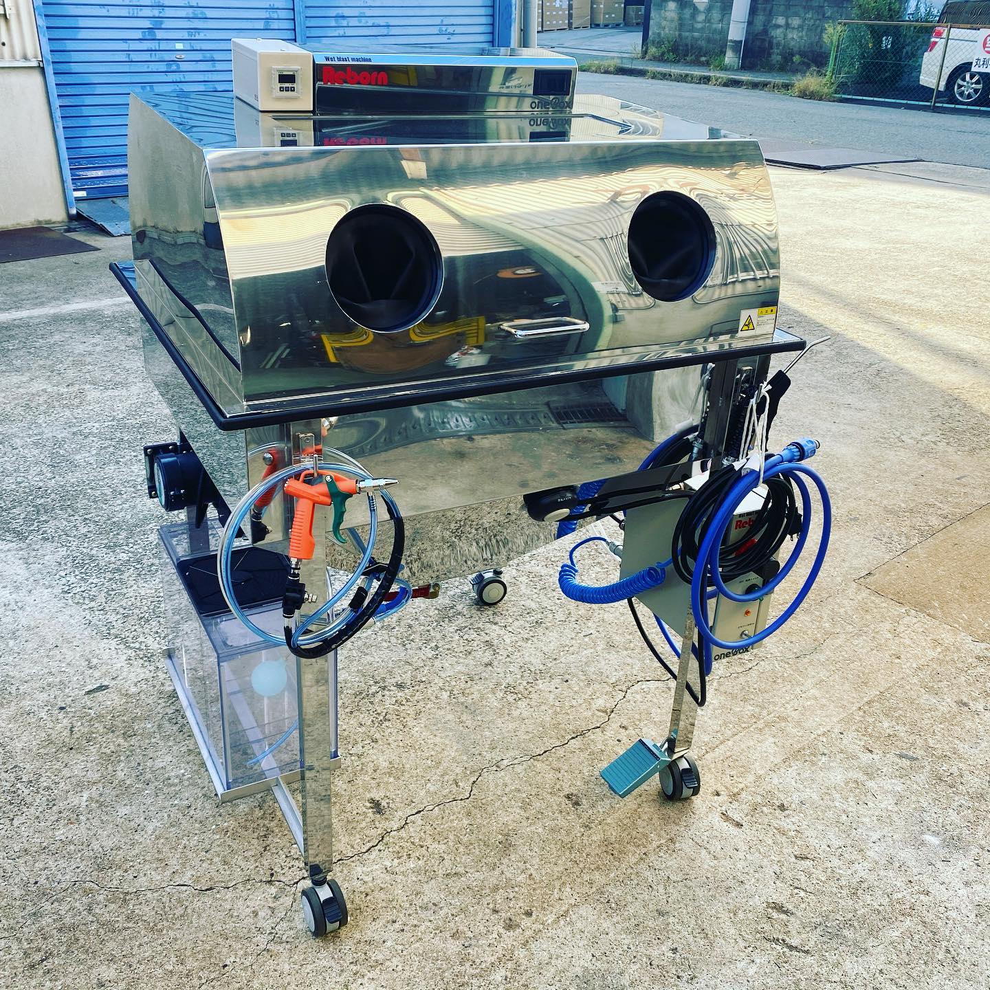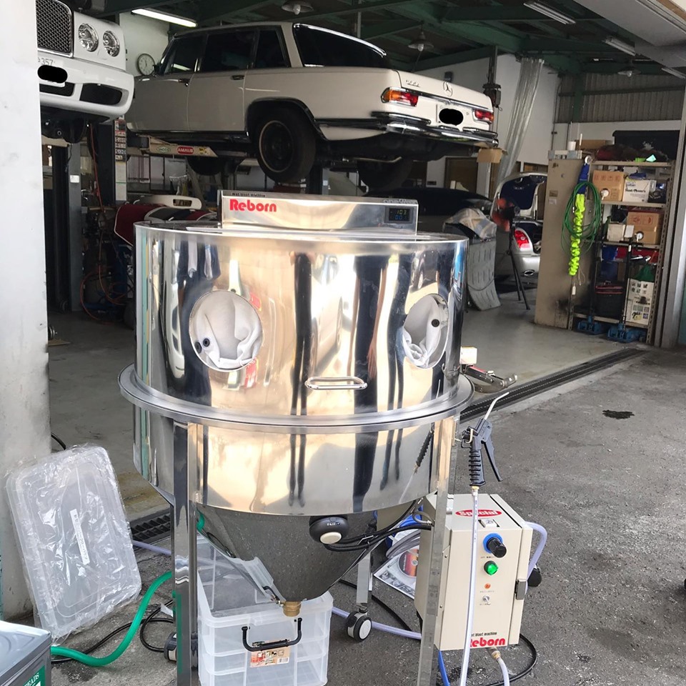 お問い合わせ頂いておりました岡山県備前市の空冷ワーゲンをメインにされている ブラストオフ様の所へ当社オリジナルウェットブラストマシン【Reborn】 のデモに行ってきました。今回は、車に7.5馬力のコンプレッサーを積んで行き、電源をお借りして吐出力2.5倍のスラントスペシャル仕様も試して頂きました。想像以上のストレスないスピードで処理できるスペシャル仕様をお買い上げいただきました。ありがとうございます。