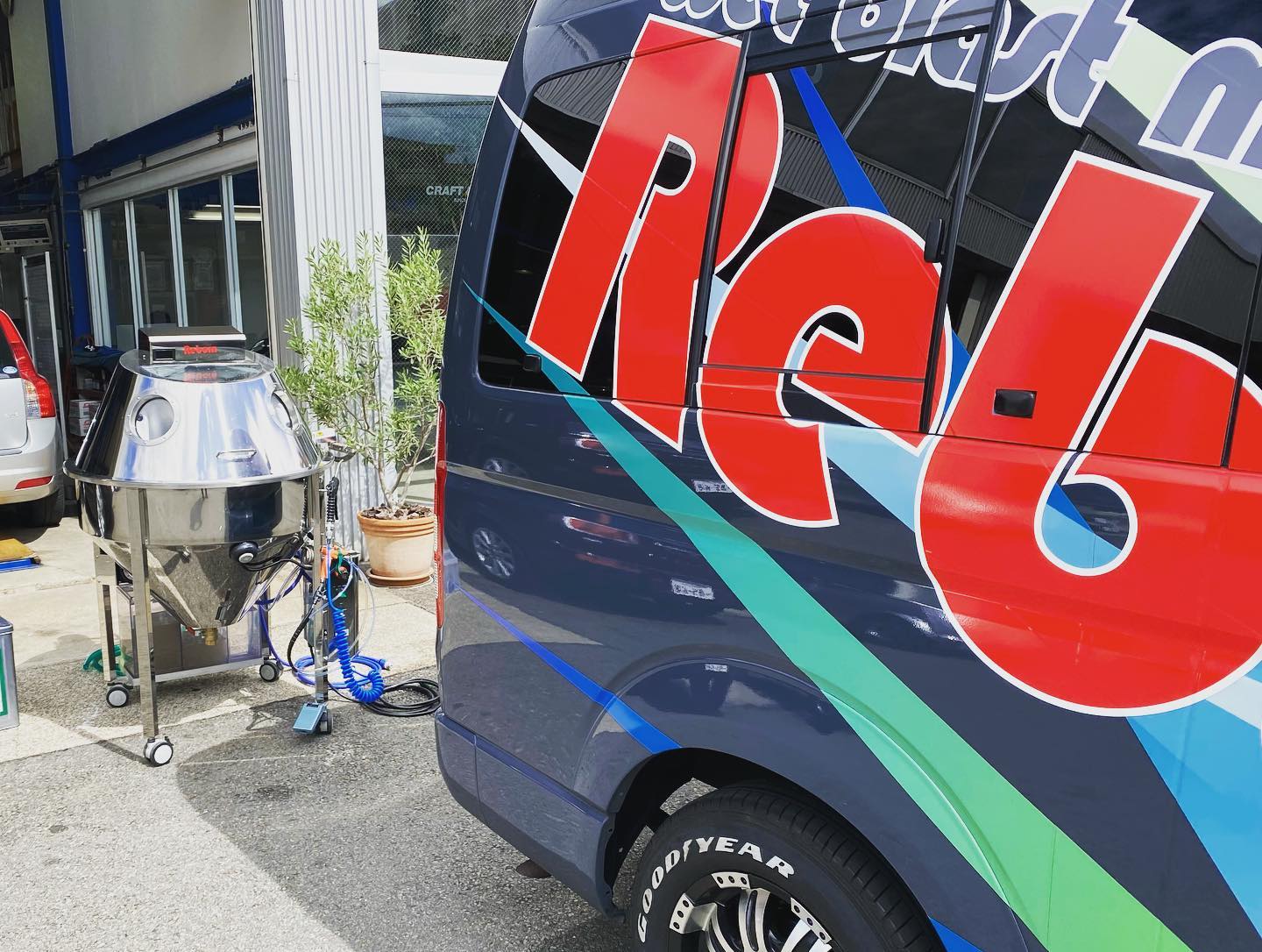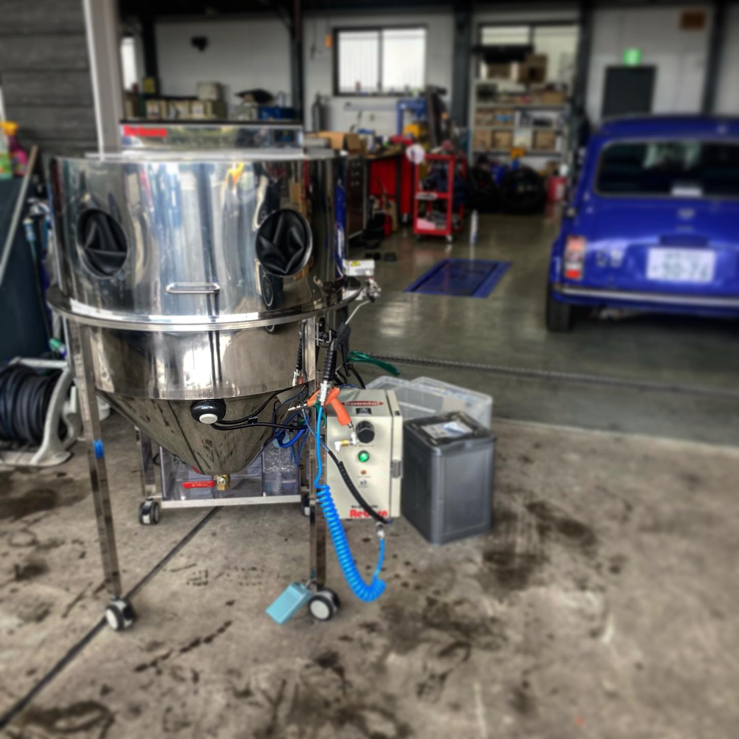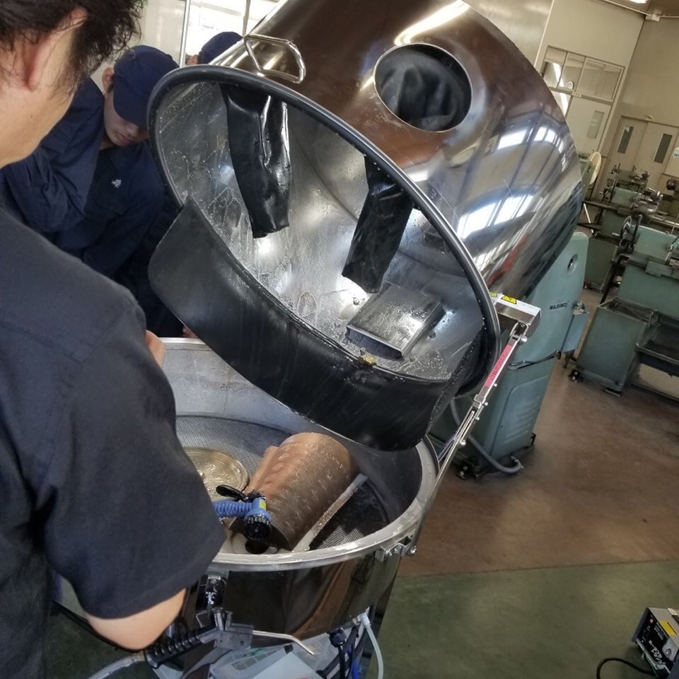 神奈川横浜市の株式会社エージェー様からのご注文で当社オリジナルウェットブラストマシンRebornスクエアと7.5馬力のコンプレッサーの納品、設置に伺いました。