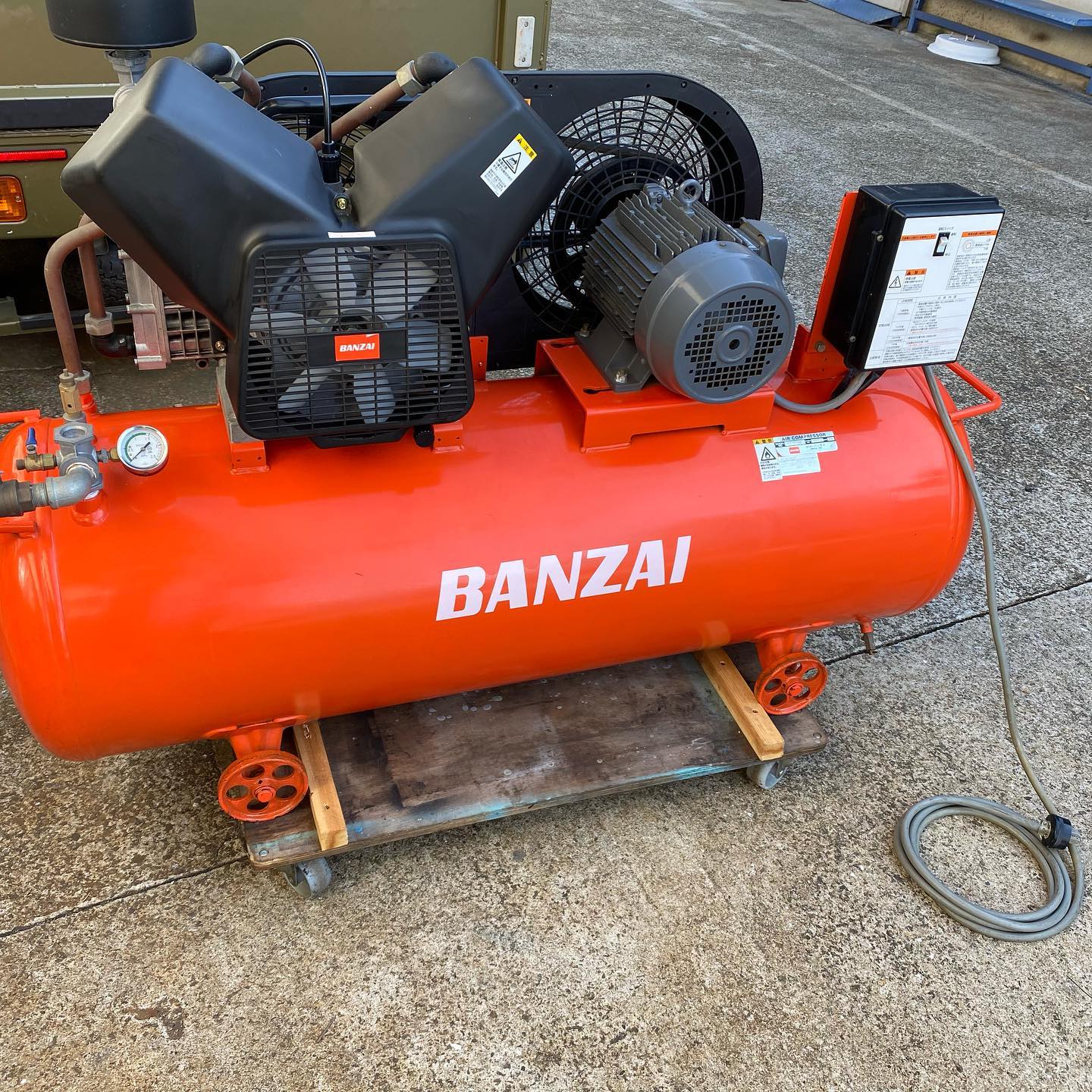 コンプレッサーが約300kgもあるのでハイエースのパワーゲートが持ち上げる事できるかな?と心配しましたが、何とか搭載する事ができました。230Lのタンクと一緒に運びました。お買い上げありがとうございました😊