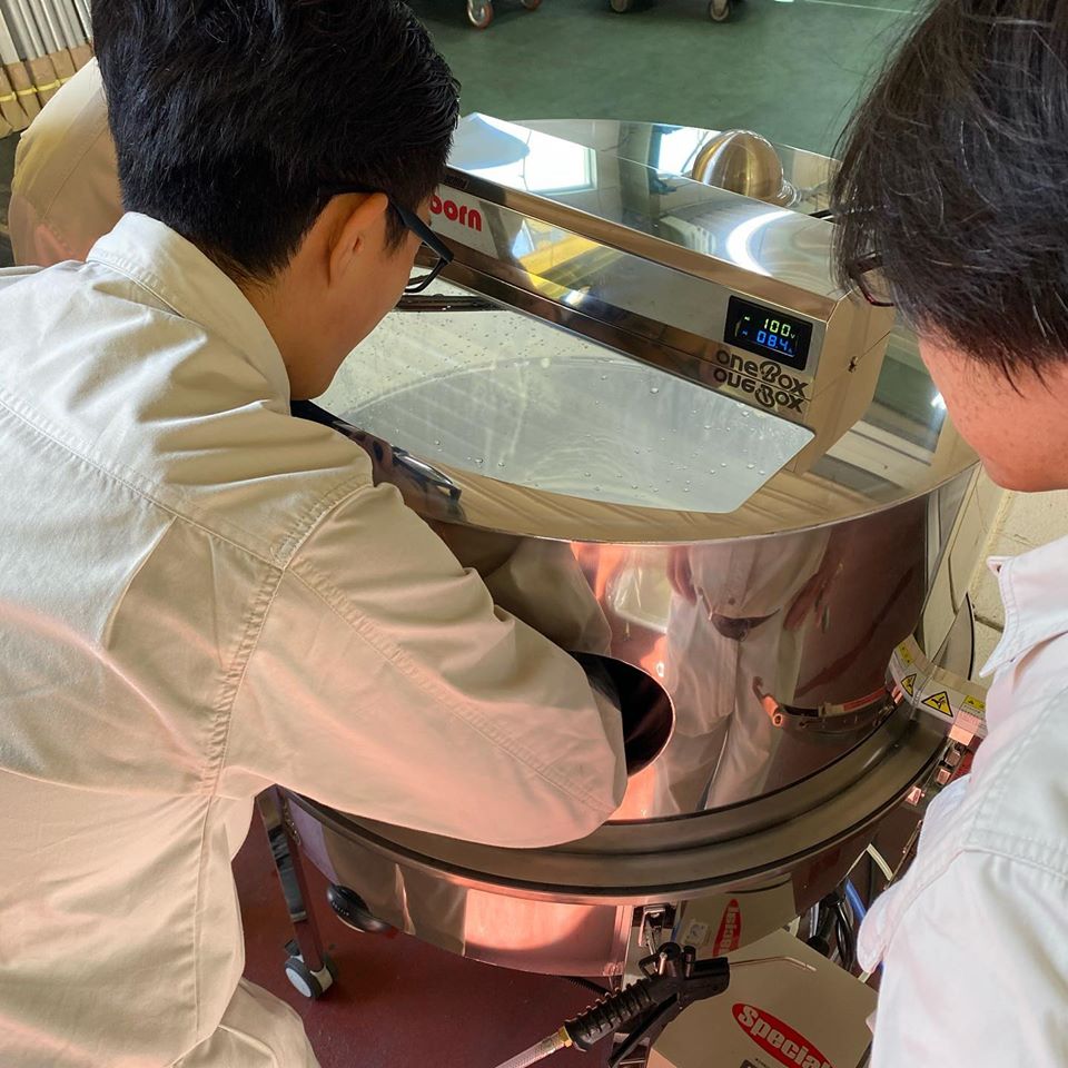 電動昇降式のリフターを使用して100mmピッチのM10のボルト穴が空いてる25mm厚の定盤付きの物をヤフオクで見つけて、それをベースに当社の向かいのいつもお世話になってる株式会社六工社の長村君にお願いして私の理想としていた溶接作業台が完成しました。下には半自動溶接機とTIGとプラズマ切断機を入れています。ついでに万力とベルトグラインダーとパンチャーも載っけてます😊