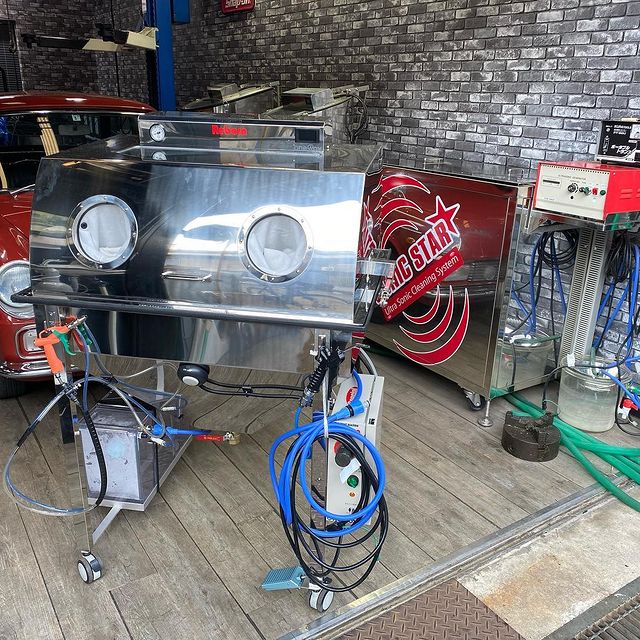 岡山県のフォーチュン様に当社オリジナルウェットブラストマシンRebornスクエアタイプを納品設置に伺いました。
