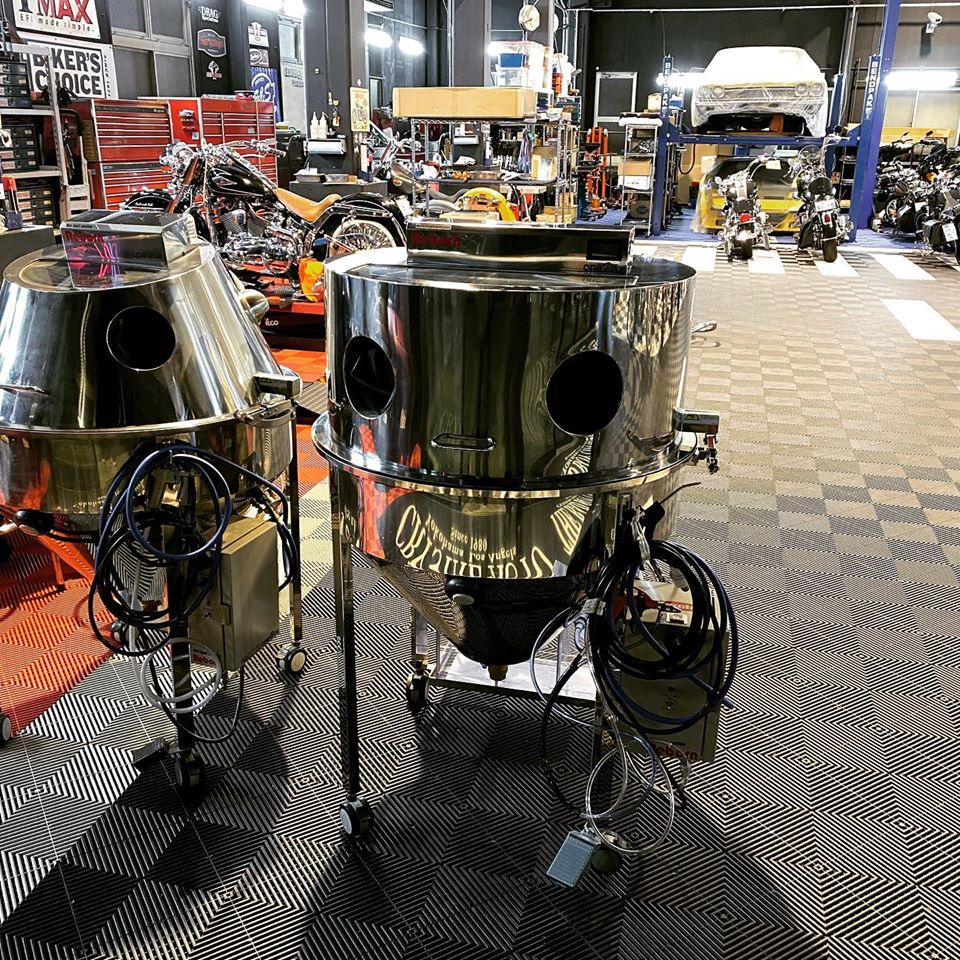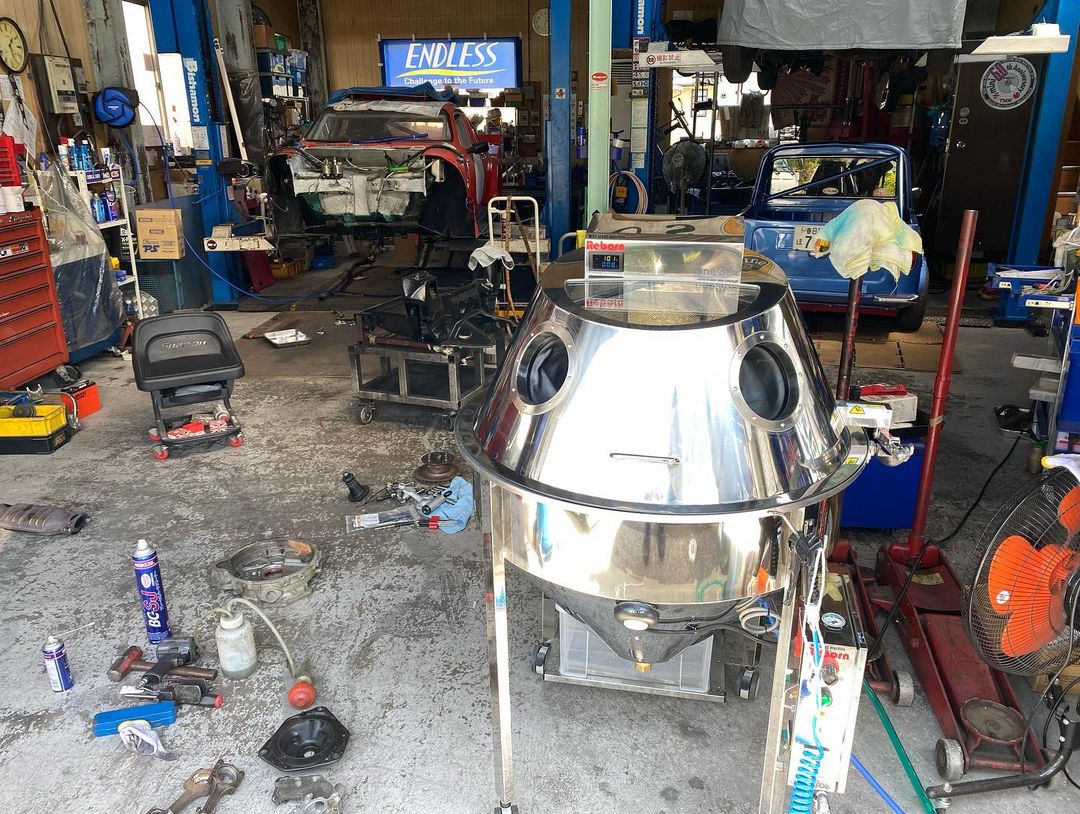 2023年10月28日に福岡市飯塚市のカスタムペイントショップラインアート様に当社オリジナルウェットブラストマシンRebornロング1500タイプを納品設置に伺いました。