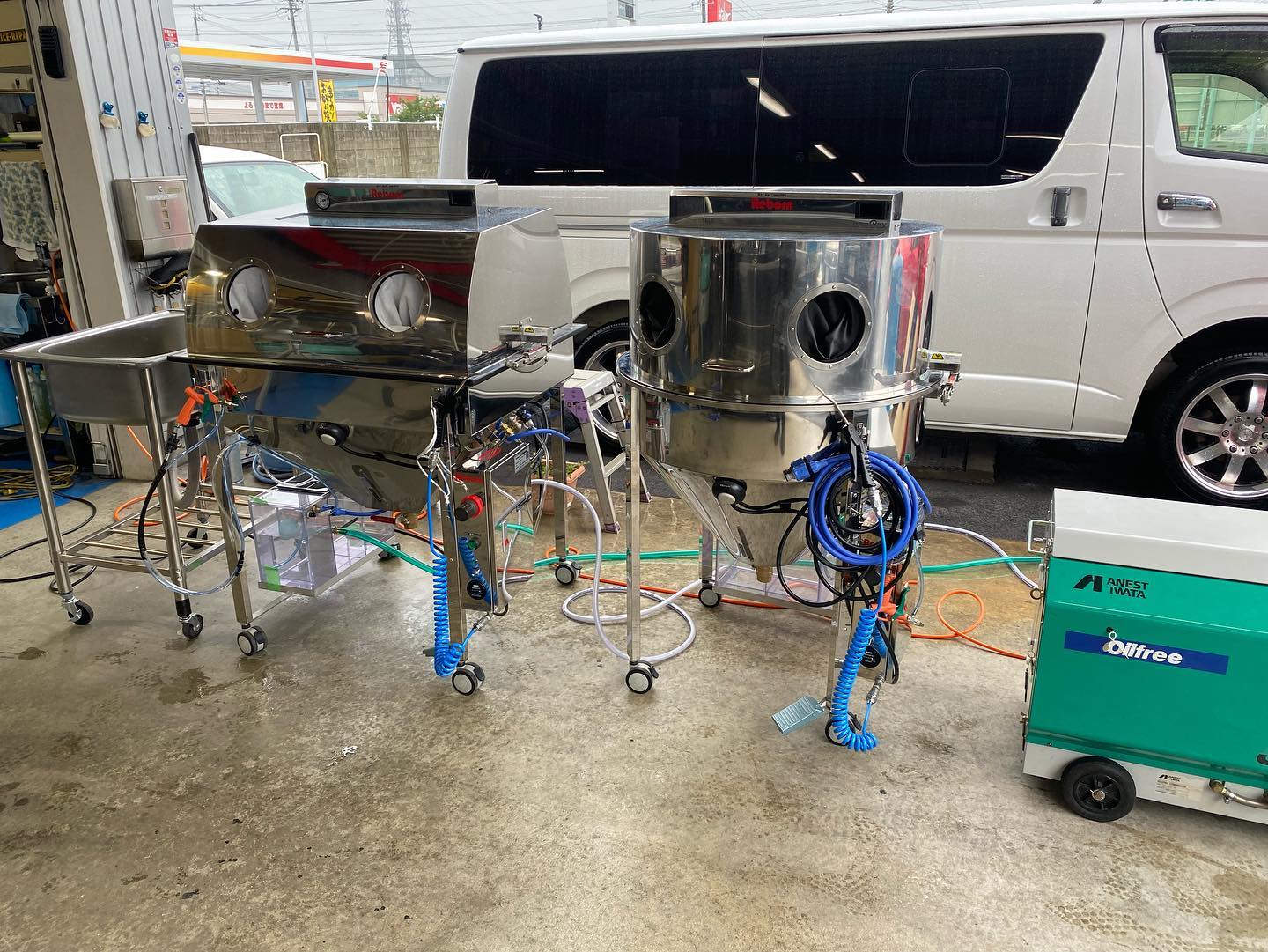 2023年12月12日に京都府京都市伏見区のホットスパイスカスタムズ様に当社オリジナルウェットブラストマシンRebornスラント5PSを納品、設置に伺いました。これからリボーンちゃんに活躍してもらいます😃 お買い上げありがとうございました。